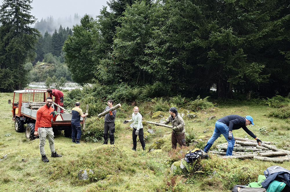 Gemeinsam mit den Landwirten der Alpgemeinschaft Stössi haben wir einen Tag lang wild gewachsene Jungbäume gefällt, um die Weideflächen freizuhalten. Das dabei angefallene Holz wurde direkt für den Winter aufbereitet. So tragen wir dazu bei, die traditionelle Bewirtschaftung der Alp zu sichern.