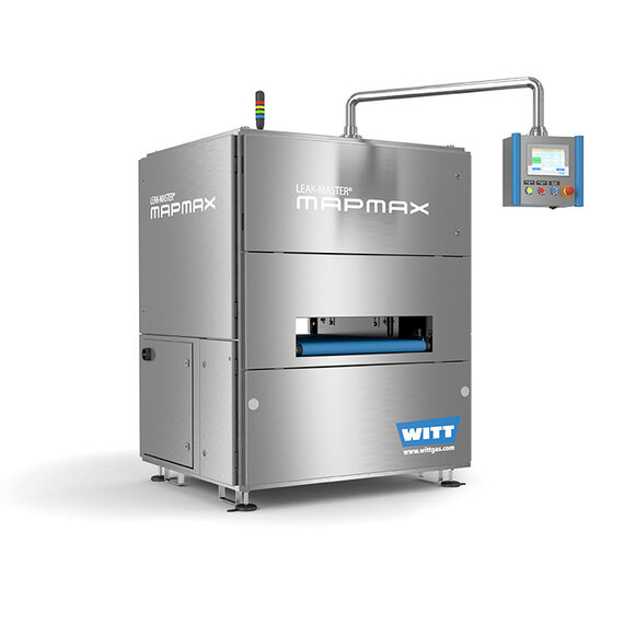 Der LEAK-MASTER® MAPMAX ist eine vollautomatisierte Inline-Maschinen zur Prüfung der gesamten Produktion. Dabei werden ein oder mehrere Prüflinge in einer Kammer positioniert, darin wird ein Vakuum erzeugt und ein allfälliges aus Leaks entweichende Schutzgas kann durch die in der Kammer enthaltenen Sensoren detektiert werden.